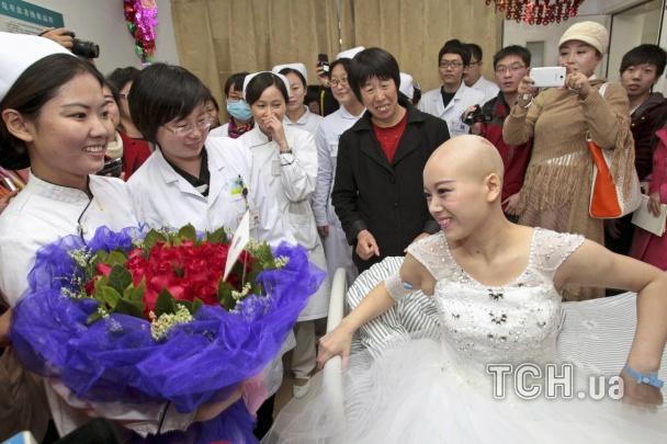 25-річна Фен Хуіжан вирішила вийти заміж за свого хлопця, з яким зустрічалася п’ять років, просто у будівлі лікарні, повідомляє ТСН.