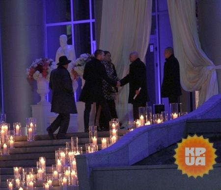 Більшість гостей приїжджали до стадіону на дорогих машинах. Вони несли в руках подарунки і величезні букети квітів. Сходи, якими гості проходили всередину “Олімпійського”, були заставлені свічками, що створювало романтичну атмосферу свята.