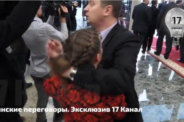 Охоронець трохи не задушив журналістку, коли вона ставила питання Петрові Порошенку, передає 17 канал.