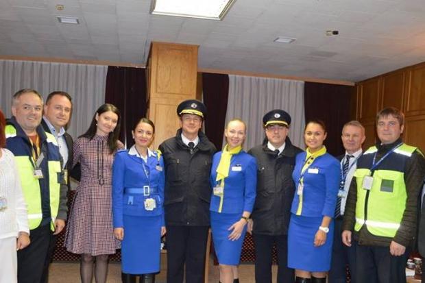 На летовищі літак зустрічали представники авіакомпанії МАУ разом з директором аеропорту Петром Осипенком, повідомляє новинар Фіртки.