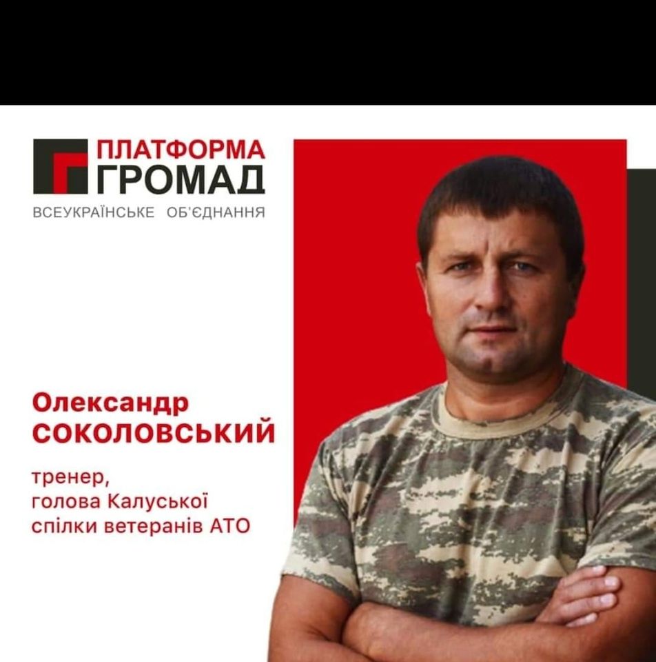 Перший номер єдиного виборчого списку «Платформи Громад» до районної ради — Олександр Соколовський, тренер-викладач ДЮСШ «Сокіл», голова громадської спілки "Громадське об’єднання Калущини учасників бойових дій (АТО) на Сході України».