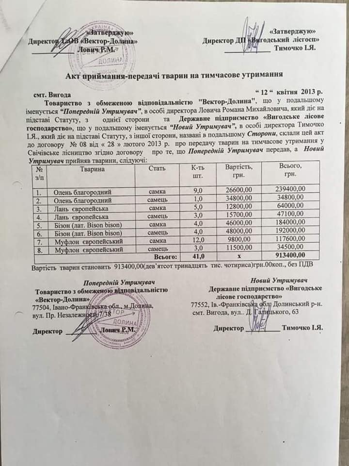 За її словами, в 2016 році після закінчення дії договіру ТОВ звернулося до лісництва, щоб забрати тварин. Але більшість тварин зникло і на балансі у лісництва їх немає. Далі були суди, результатами яких стала перемога лісництва. Але суд зобов'язав лісництво взяти вцілілих тварин на баланс.