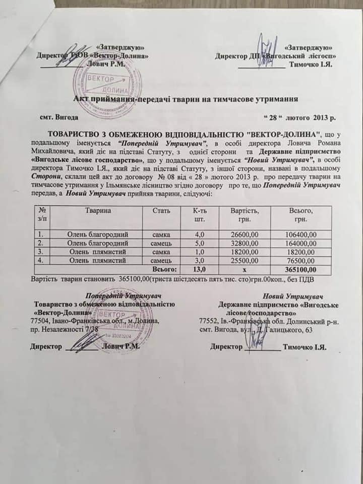 "Зазначу, що тварини в лісництво були передані через ТОВ “Вектор-Поділля” у 2013 році. У 2014 році екоінспекція під час перевірки зафіксувала наявність цих тварин на території. Якимось чином ці тварини не були взяті на баланс цього лісництва", — зазначила нардепка.