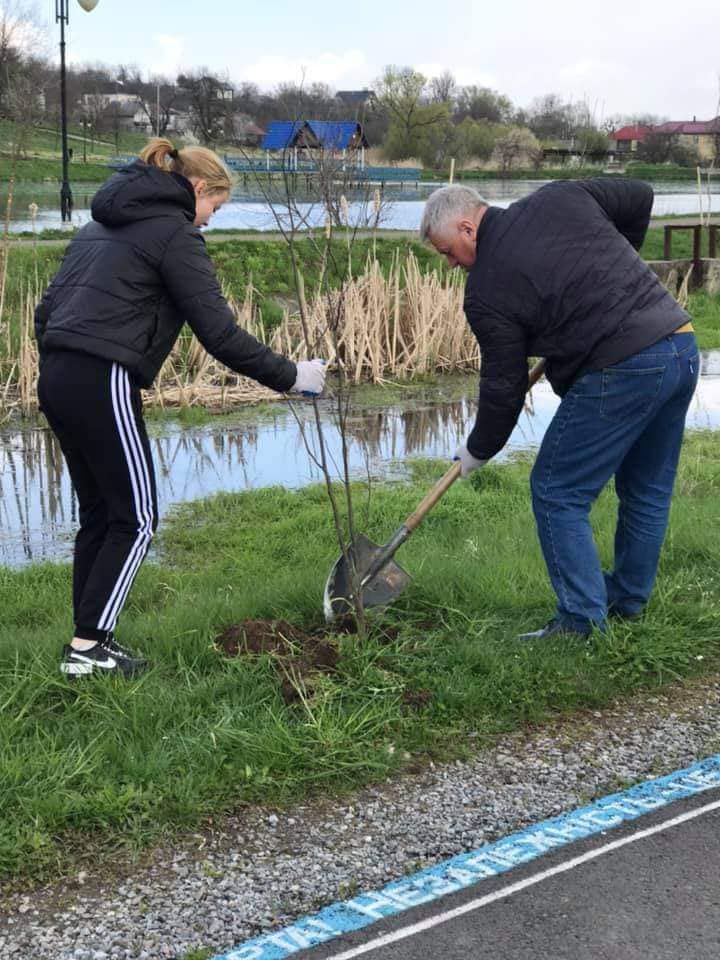 До висадки дерев долучилася і заступниця міського голови Надія Гуш, яка зізналася, що дерева садить не вперше. Адже живе в приватному секторі, тож, має власний город і сад.