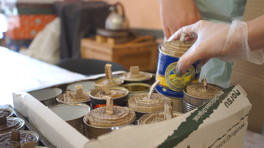 У коментарі "Вікнам" волонтерка СУМу Яна Мазур розповіла, що вирішили виготовляти окопні свічки, подивившись один із телерепортажів. Тоді оголосили збір необхідної продукції. Трьохшарового картону було вдосталь, адже постійно отримують і пакують посилки. Виготовлення окопних свічок у офісі Спілки української молоді триває два тижні.