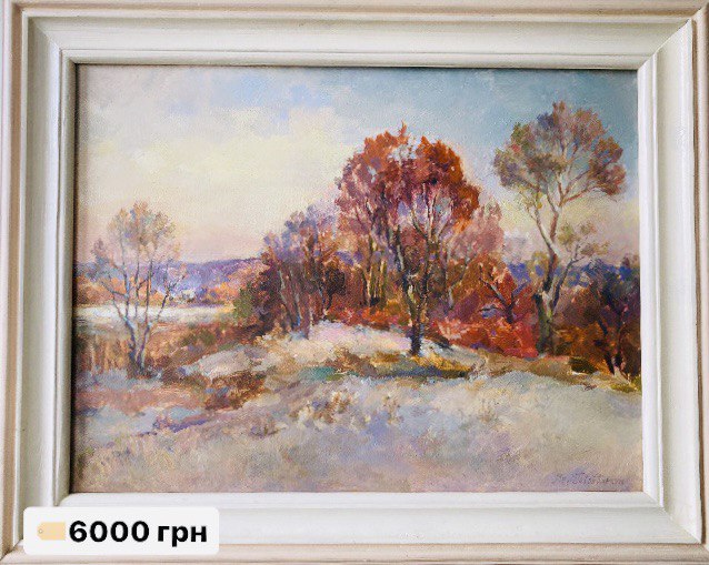 Картини Ярослава Господарчука "Бузок" і "Перший сніг" продані на онлайн-аукціоні за 8000 і 6000 гривень відповідно, а робота "Сова" Олі Чолінської — за 350 гривень.